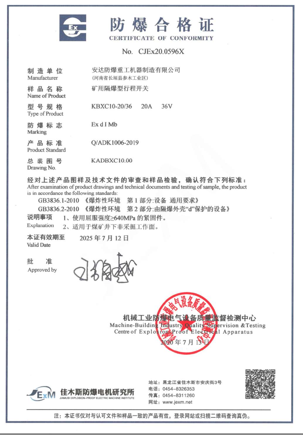 » 礦用隔爆型行程開關(guān) 防爆合格證