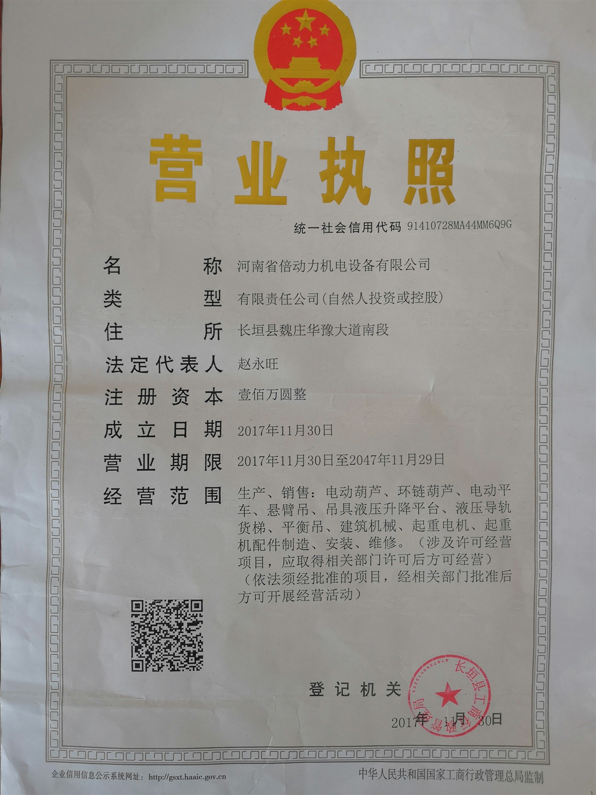 發(fā)證機(jī)構(gòu):   長垣縣工商行政管理局 發(fā)證時(shí)間 :   2017-11-30