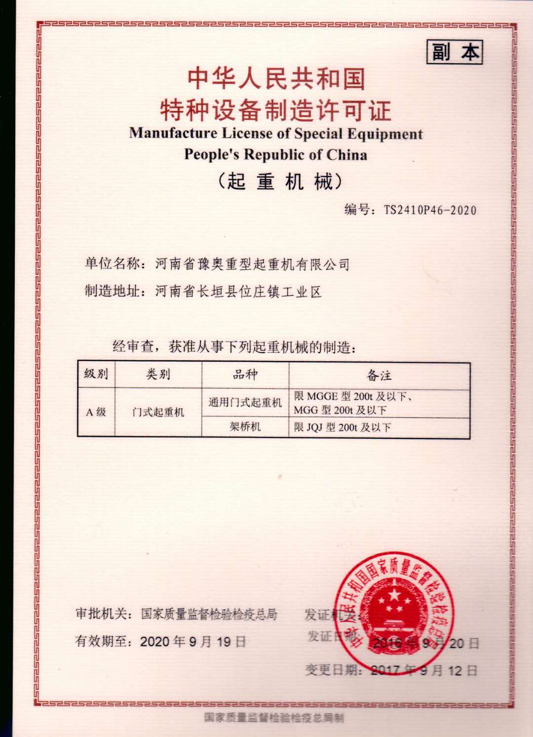 您當(dāng)前的位置:首頁(yè) » 榮譽(yù)資質(zhì) » 特種設(shè)備制造許可證