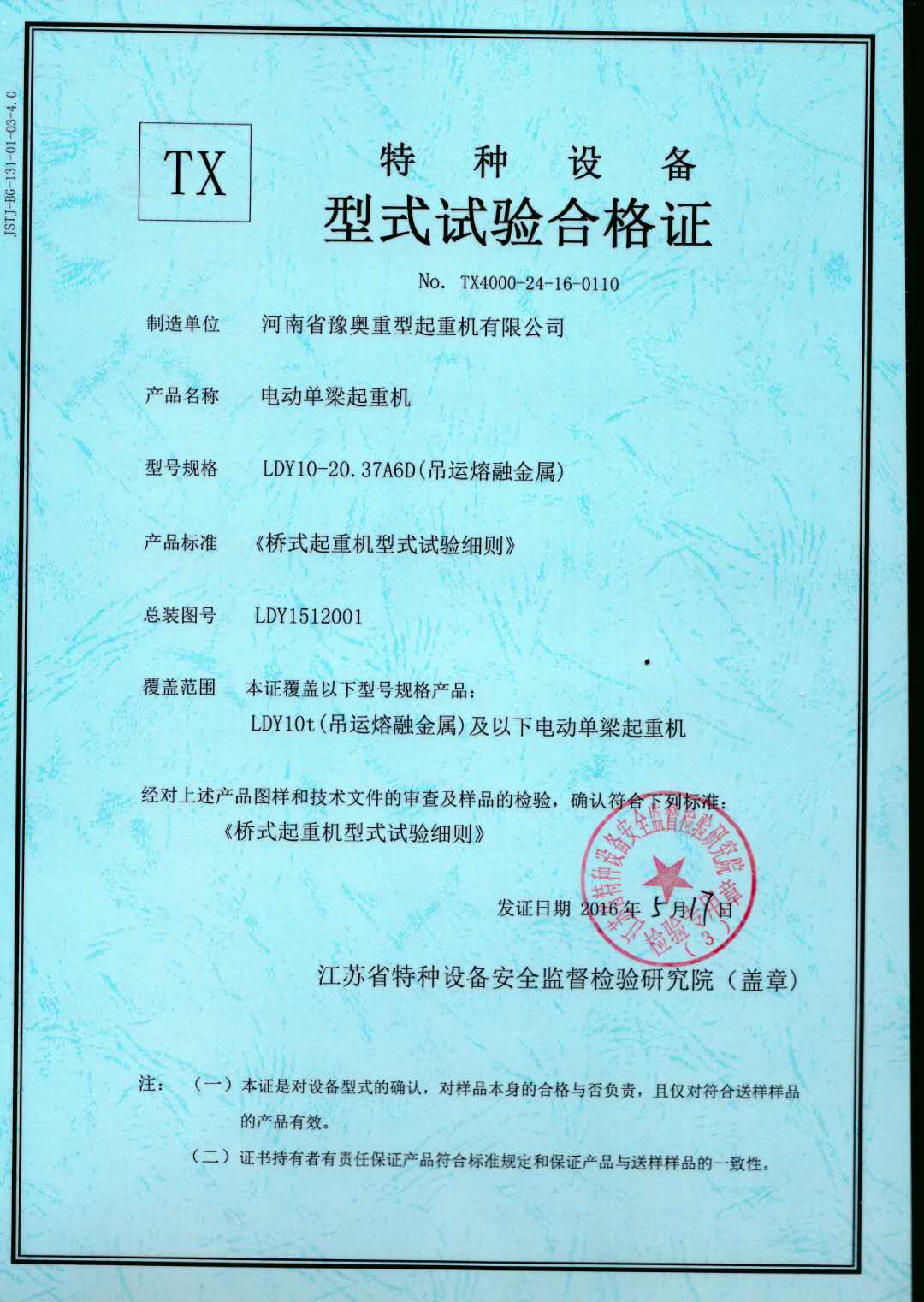| 發(fā)證機(jī)構(gòu): | 特種設(shè)備安全監(jiān)督檢驗研究院 | 發(fā)證時間 : | 2016-05-17 |