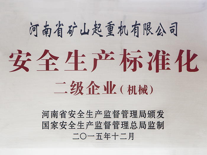 榮譽(yù)資質(zhì) 安全生產(chǎn)標(biāo)準(zhǔn)化二級(jí)企業(yè)(機(jī)械)