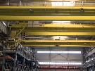 吊鉤橋式起重機(jī)是目前應(yīng)用較為廣泛的起重機(jī)械,其主要由箱形橋架、起重小車、大車運(yùn)行機(jī)構(gòu)和電氣控制系統(tǒng)組成。取物裝置是吊鉤。主梁上面鋪設(shè)有軌道,供起重小車沿主梁方向作橫向移動(dòng)。主梁與箱型端梁焊接而成,端梁中間布置有接頭,螺栓或銷軸連接,供橋架分拆運(yùn)輸。操作方式設(shè)有地面手柄、無線遙控和司機(jī)室三種操作形式。