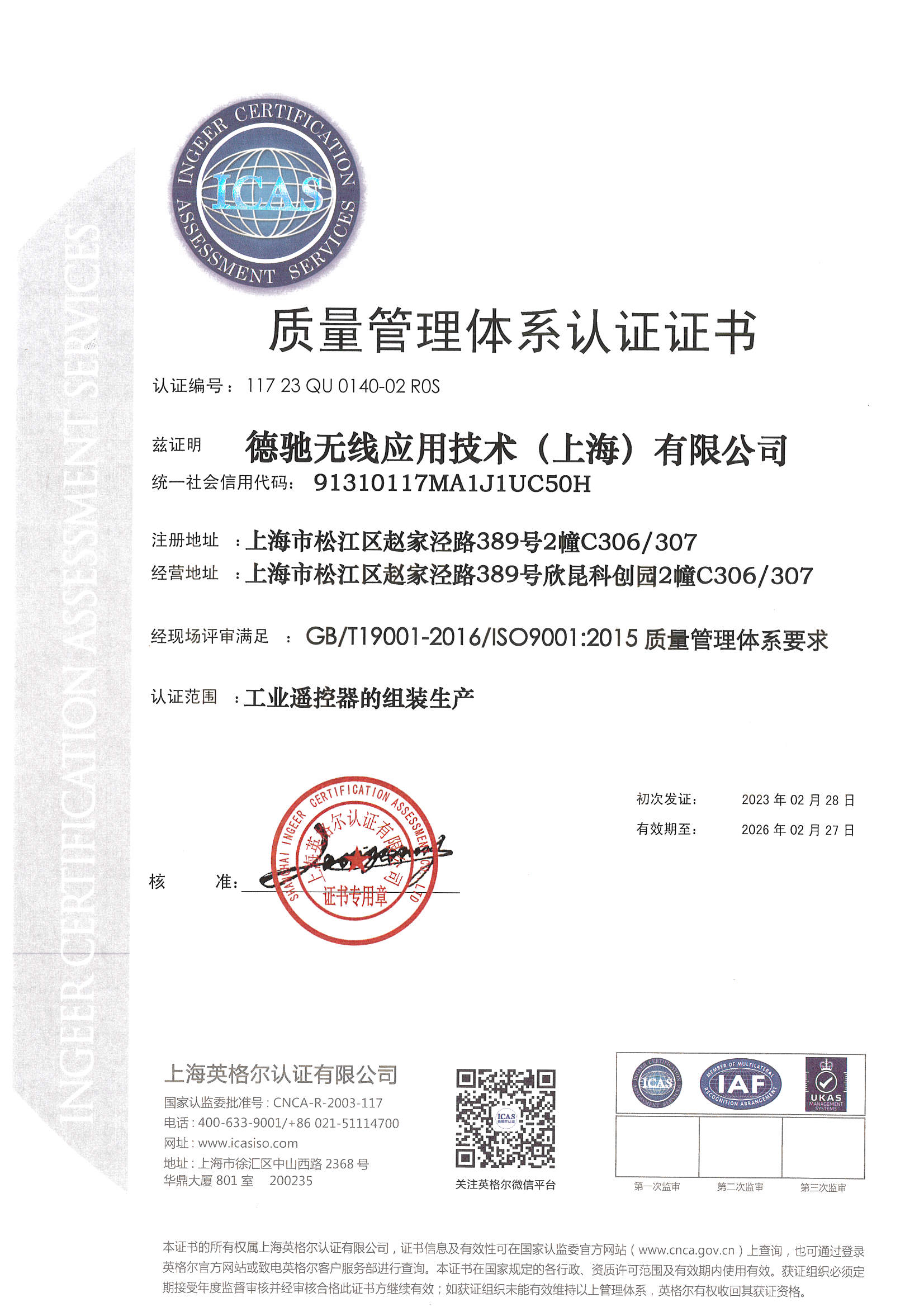 | 發(fā)證機(jī)構(gòu): | 上海英格爾認(rèn)證有限公司 | 發(fā)證時(shí)間 : | 2023-02-28 |