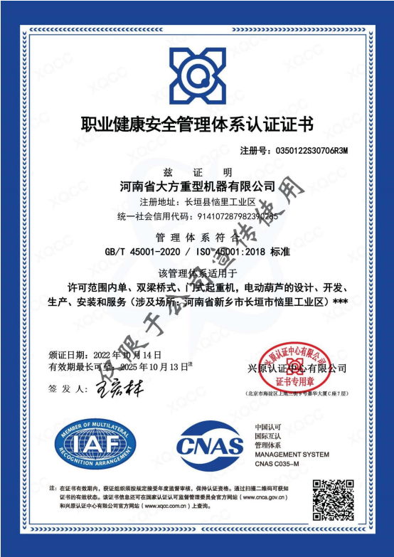 榮譽(yù)資質(zhì) 職業(yè)健康安全管理體系認(rèn)證證書