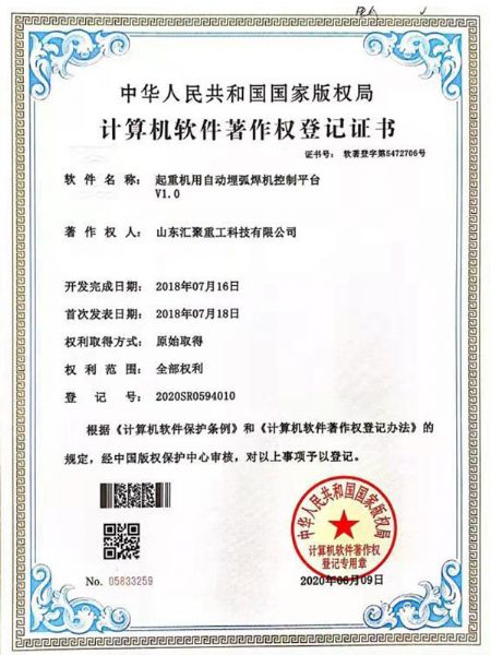 榮譽(yù)資質(zhì) 起重機(jī)用自動埋弧焊機(jī)控制平臺 V1.0