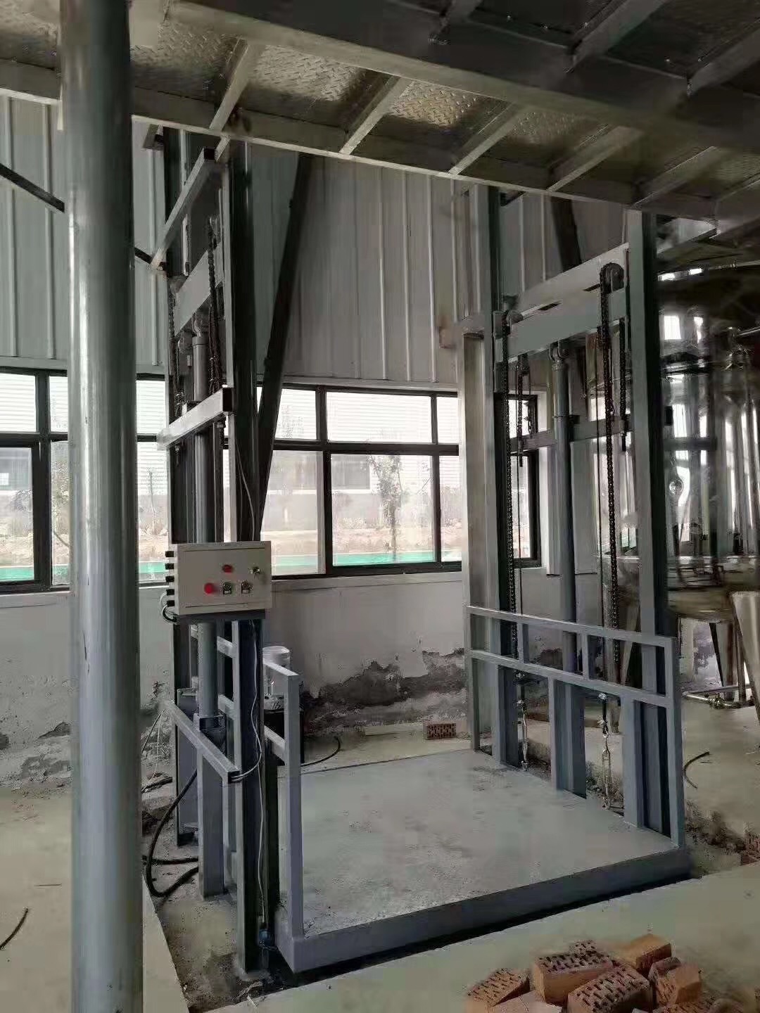 山西導(dǎo)軌式升升降貨梯、鄭州導(dǎo)軌式液壓升降機廠家、新鄉(xiāng)液壓升降貨梯價格、開封液壓升降貨梯3安裝是一種非剪叉式液壓升降機械設(shè)備.用于二三四層工業(yè)廠房,餐廳,設(shè)備運行平穩(wěn),操作簡單可靠,貨物傳輸經(jīng)濟便捷量身打造高效率的送貨平臺,產(chǎn)品液壓系統(tǒng)設(shè)置防墜、上下層門互動連鎖,各樓層和升降臺工作臺面均可設(shè)置操作按鈕,實現(xiàn)多點控制。產(chǎn)品結(jié)構(gòu)堅固,承載量大,升降平穩(wěn),安裝維護(hù)簡單方便,是經(jīng)濟實用的低樓層間替代電梯的理想貨物輸送設(shè)備。根據(jù)升降臺的安裝環(huán)境和使用要求,選擇不同的可選配置,可取得更好的使用效果大承載10噸,實現(xiàn)多點控制,上下樓層互動聯(lián)鎖,達(dá)到安全使用;提升高度高,采用旁置油缸、或雙測式油缸,運行平穩(wěn)、無噪聲、維修方便、使用壽命較長;停電手動下降、緊急停止按鈕,方便、快捷、實用; 地坑深度一般為15cm-30cm,頂層高度不受限制,可根據(jù)現(xiàn)場環(huán)境定做用;層門可貫通,廠房內(nèi)外可相互戳開,方便、節(jié)省空間;特別適合2-3層鋼結(jié)構(gòu)廠房,內(nèi)外部均可使用;泵站采用進(jìn)口泵站,如果速度要求過高,采用進(jìn)口定制泵站,達(dá)到理想的送貨要求,油缸和密封件采用進(jìn)口零部件,解決客戶油壓不穩(wěn)定,零部件漏油問題,電器零部件可選,液壓電梯在具備傳統(tǒng)曳引式電梯的安全裝置的同時, 還設(shè)有:溢流閥:可防止上行運動時系統(tǒng)壓力過高,應(yīng)急手動閥:電源發(fā)生故障時, 可使轎廂應(yīng)急下降到最近的層樓位置開門, 手動泵:當(dāng)系統(tǒng)發(fā)生故障時, 管路破裂閥:當(dāng)液壓系統(tǒng)管路破裂轎廂失速下降時, 可自動切斷油路停止下降。油箱油溫保護(hù):當(dāng)油箱中油溫超過標(biāo)準(zhǔn)設(shè)定值時, 油溫保護(hù)裝置發(fā)生信號, 暫停電梯使用, 當(dāng)油溫下降后方可啟動電梯。只需要挖十幾厘米的地坑,保證貨物進(jìn)出的方便,方便設(shè)備的安裝和使用場合。液壓油缸、特種重型鏈條、鋼絲繩、多從保護(hù),保證設(shè)備運行和使用的安全??梢詿o需地坑,直接采用斜坡處理,極大方便設(shè)備的安裝使用空間和場合。