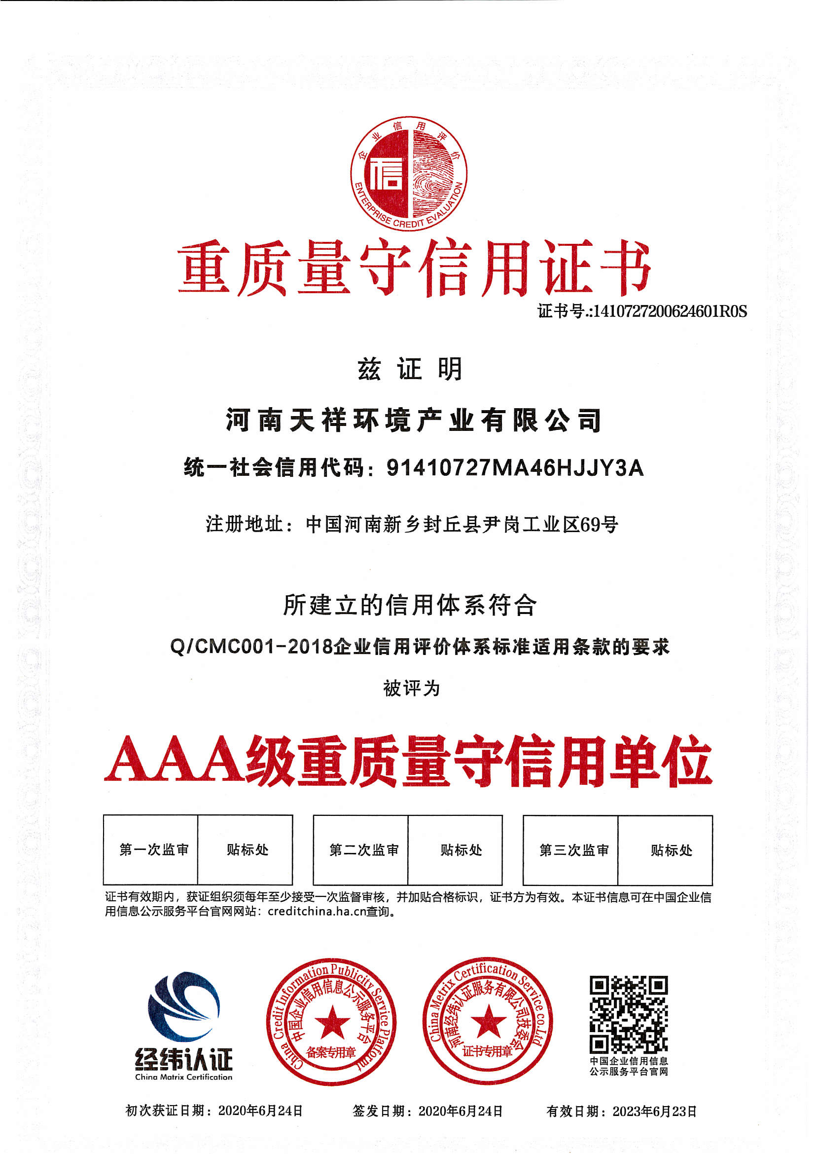 | 發(fā)證機(jī)構(gòu): | 第三方信用評(píng)級(jí)機(jī)構(gòu) | 發(fā)證時(shí)間 : | 2020-06-24 |