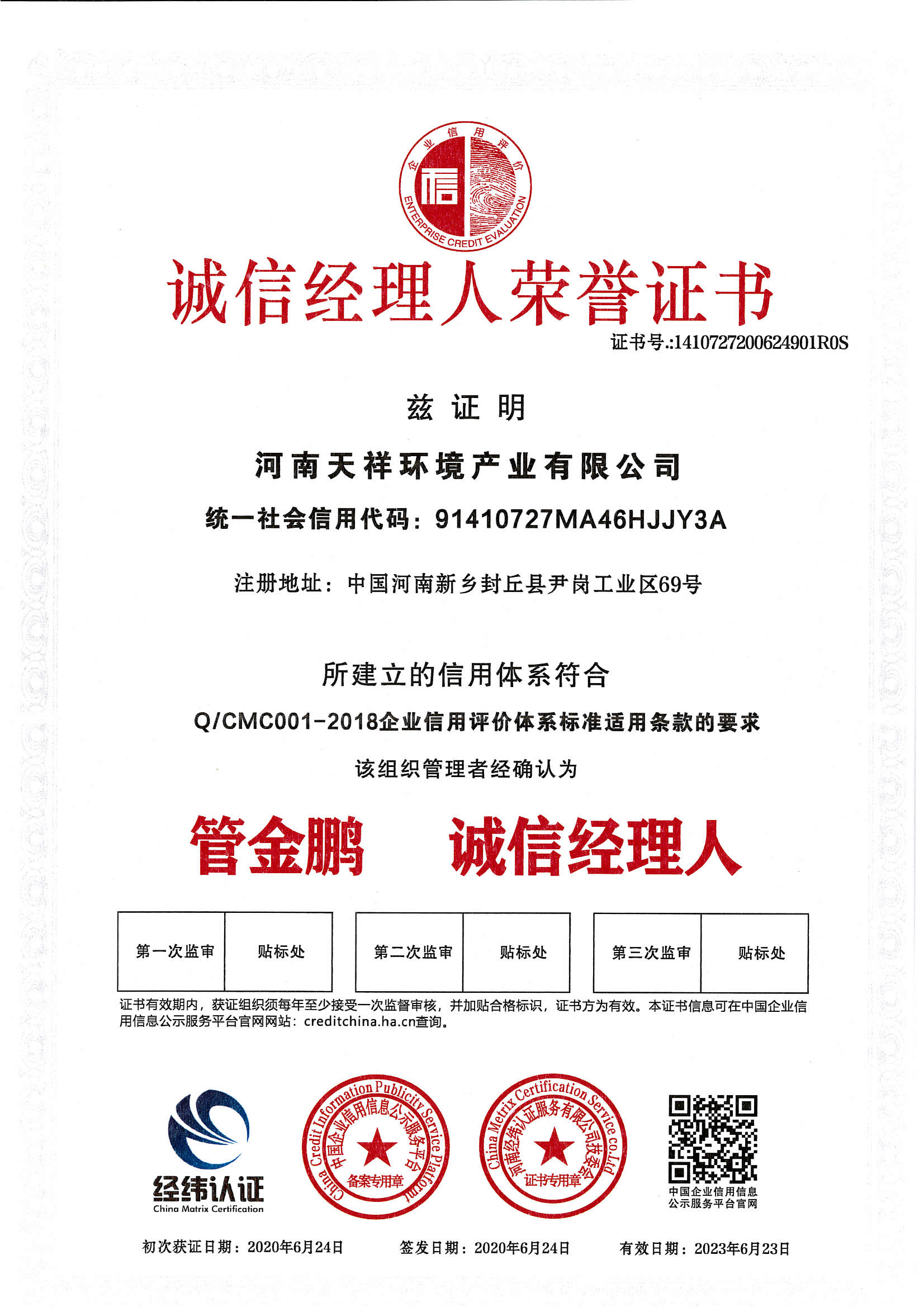 發(fā)證機構(gòu):   第三方信用評級機構(gòu) 發(fā)證時間 :   2020-06-24