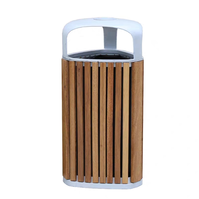 河南天祥戶外(鑄鋁+菠蘿格實木)垃圾桶