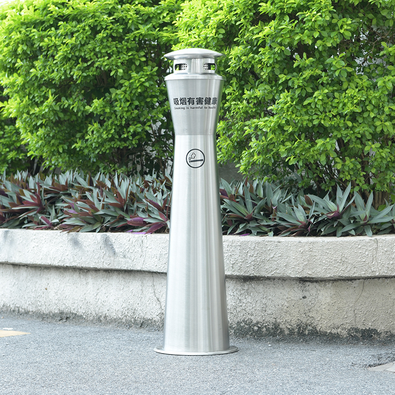 滅煙柱由煙灰缸和投放桶兩部分組成,主要安裝在各公園廣場、商業(yè)區(qū)、主干道、公交站、市場周邊、學校、機場、車站附近等人流密集的地方。滅煙柱是城市基礎(chǔ)設施的一部分,裝滅煙柱可以提醒人們愛護環(huán)境,也可以減輕環(huán)衛(wèi)工人的工作負擔,甚至可以對煙頭進行回收再利用。滅煙柱讓大家養(yǎng)成了將煙頭扔進滅煙柱的習慣,改善環(huán)境,美化城市;減少隱患,保障安全;不銹鋼材質(zhì)的滅煙柱能夠有效減少煙頭明火帶來的火災隱患,提升城市安全水平。
