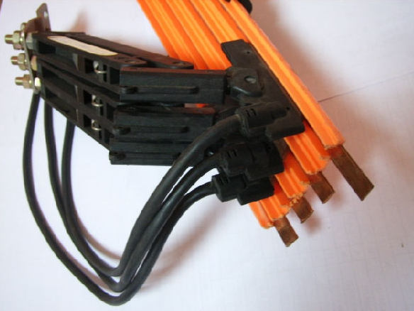 集電器是滑觸線系統(tǒng)中集電側(cè)拾取電能的主要裝置,它通過集電刷與導(dǎo)軌的滑動(dòng)接觸,將電能直接傳導(dǎo)至用電器,從而實(shí)現(xiàn)系統(tǒng)的移動(dòng)供電。集電器由機(jī)械結(jié)構(gòu)的張力裝置和直接與導(dǎo)軌滑動(dòng)接觸的集電刷兩部分組成。