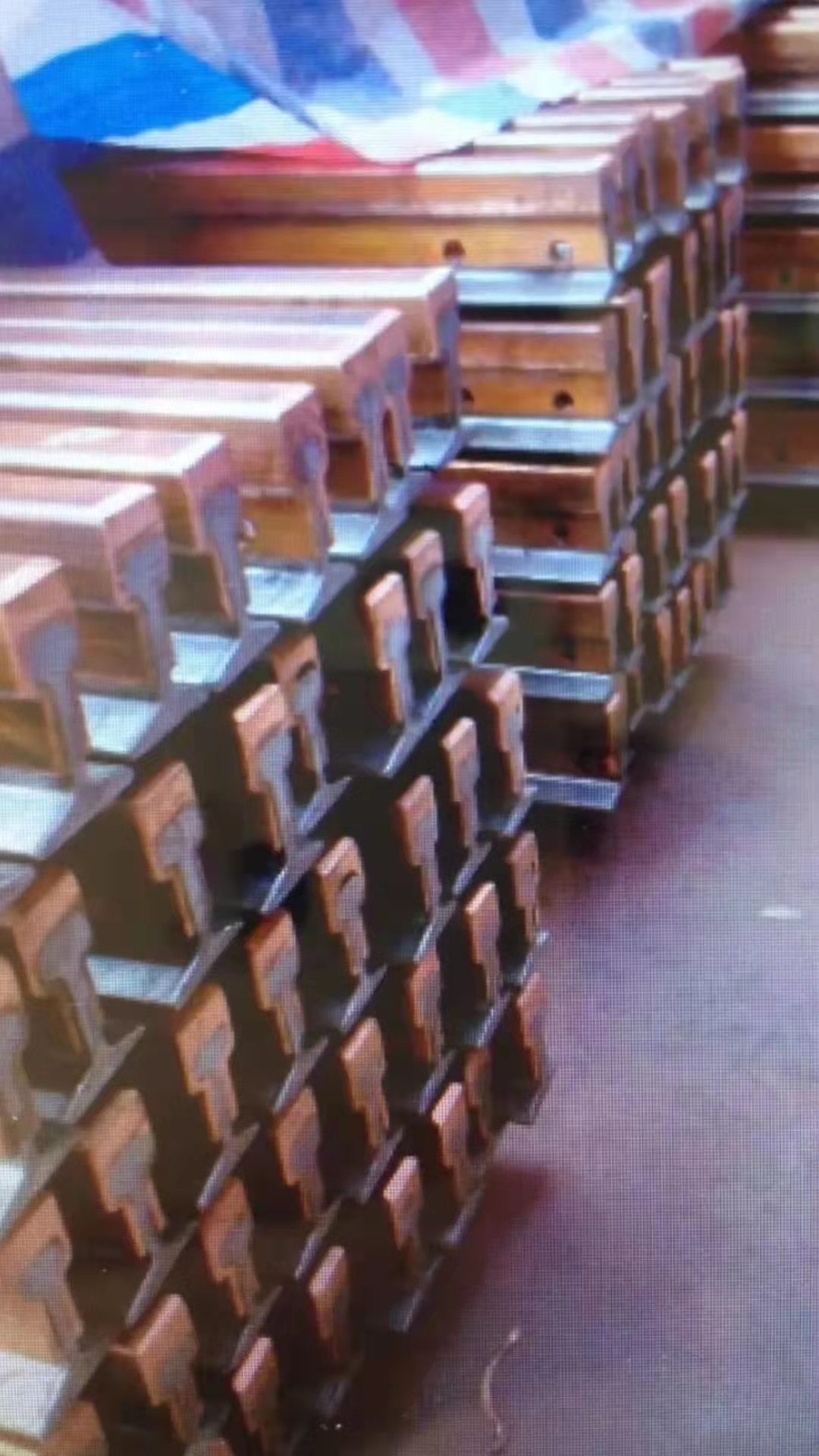 QYT系列高溫剛體滑觸線是由導(dǎo)電銅軌和燕尾式輕軌構(gòu)成的,優(yōu)良的嵌裝工藝保證二者之間的緊密結(jié)合,用高強(qiáng)度專用絕緣子支撐,安裝或焊裝在道軌梁的支架上,導(dǎo)電銅軌選用**電解銅,通過(guò)電熱擠軋的方式,由專用軋機(jī)逐次逼近一次性軋制成形,與作為載體的燕尾式輕軌緊密嵌裝,提高滑線的強(qiáng)度、鋼度和使用壽命。