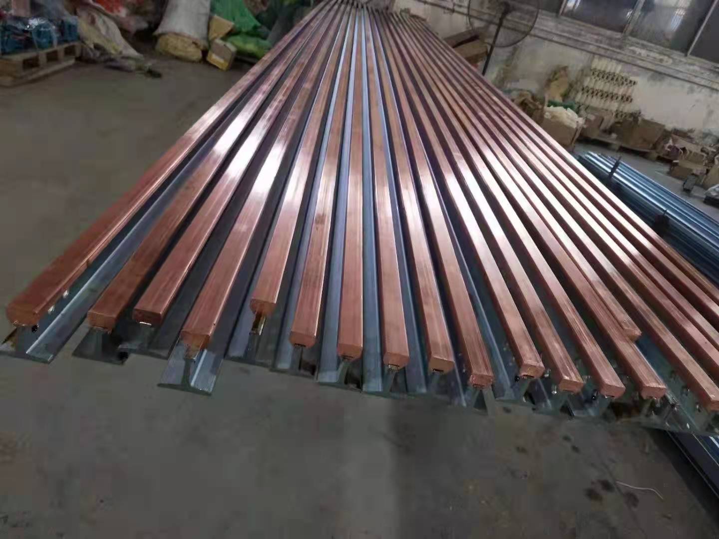 QYT系列高溫剛體滑觸線是由導(dǎo)電銅軌和燕尾式輕軌構(gòu)成的,優(yōu)良的嵌裝工藝保證二者之間的緊密結(jié)合,用高強(qiáng)度專用絕緣子支撐,安裝或焊裝在道軌梁的支架上,導(dǎo)電銅軌選用**電解銅,通過電熱擠軋的方式,由專用軋機(jī)逐次逼近一次性軋制成形,與作為載體的燕尾式輕軌緊密嵌裝,提高滑線的強(qiáng)度、鋼度和使用壽命。