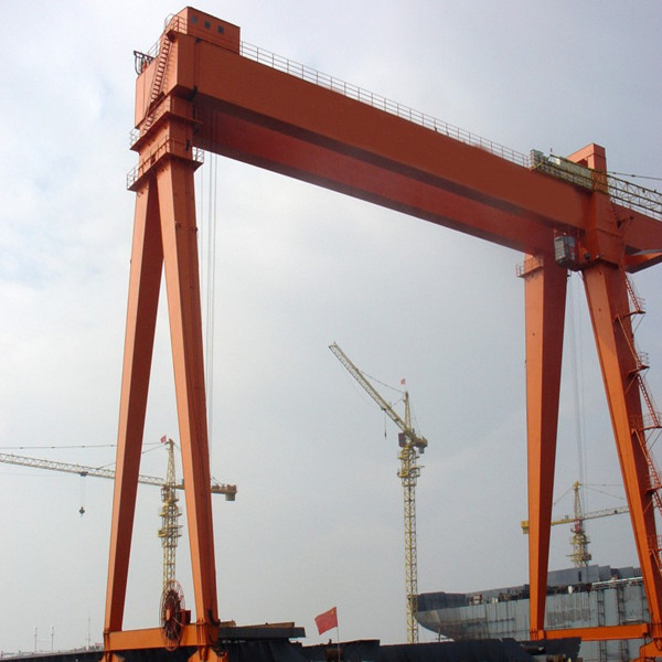 它的金屬結(jié)構(gòu)像門形框架,承載主梁下安裝兩條支腳,可以直接在地面的軌道上行走,主梁兩端可以具有外伸懸臂梁。
