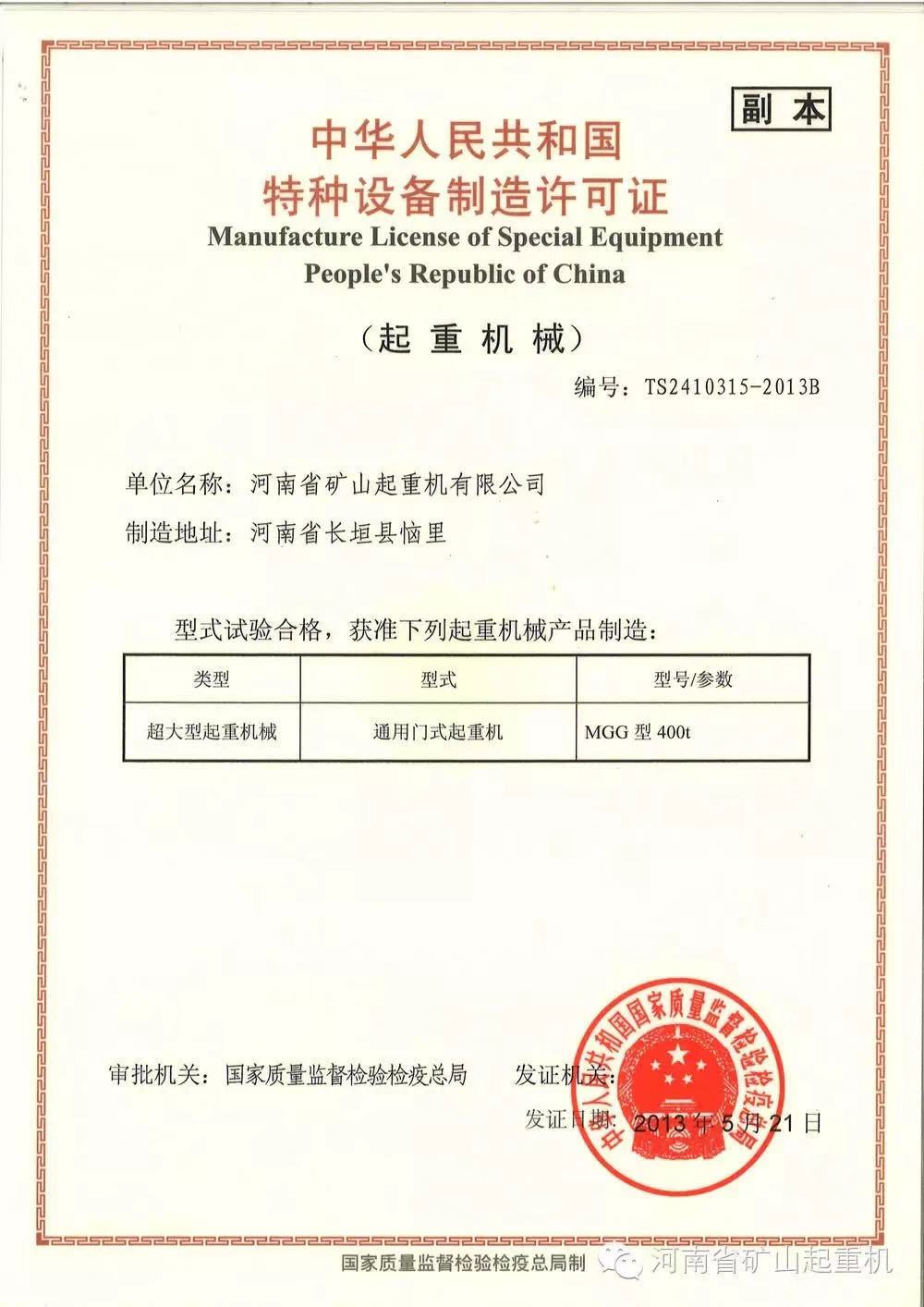| 發(fā)證機(jī)構(gòu): | 質(zhì)量監(jiān)督局 | 發(fā)證時(shí)間 : | 2013-05-21 |