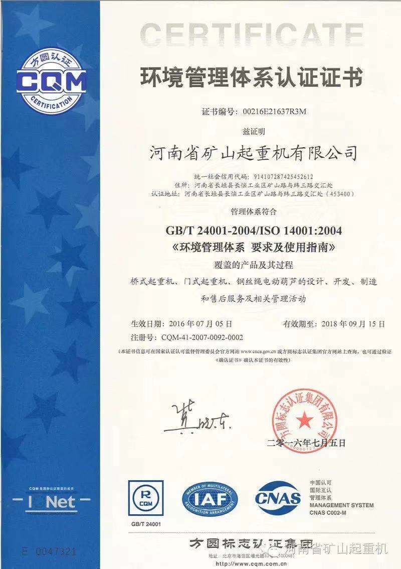 公司介紹 環(huán)境管理體系認(rèn)證證書(shū)
