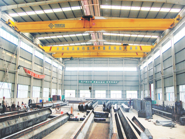 該產(chǎn)品采用四梁四軌雙小車結(jié)構(gòu)型式,主體結(jié)構(gòu)在垂直及水平載荷作用下,具有很好的強度和剛度。大車車輪采用20輪布置方式,力學(xué)模型簡單,輪壓分布均衡,可有效降低廠房鋼結(jié)構(gòu)造價。 整機采用調(diào)速控制系統(tǒng),運行平穩(wěn)、安全,起、制動沖擊小,同時起升調(diào)速裝置采用一用一備系統(tǒng),當一套裝置發(fā)生故障時,可實現(xiàn)安全、快速切換,保證起升系統(tǒng)正常運行。 車輪組采用新系列標準45°剖分式鍛造車輪,具有承載能力高、防塵、使用壽命長、更換維護方便等特點。