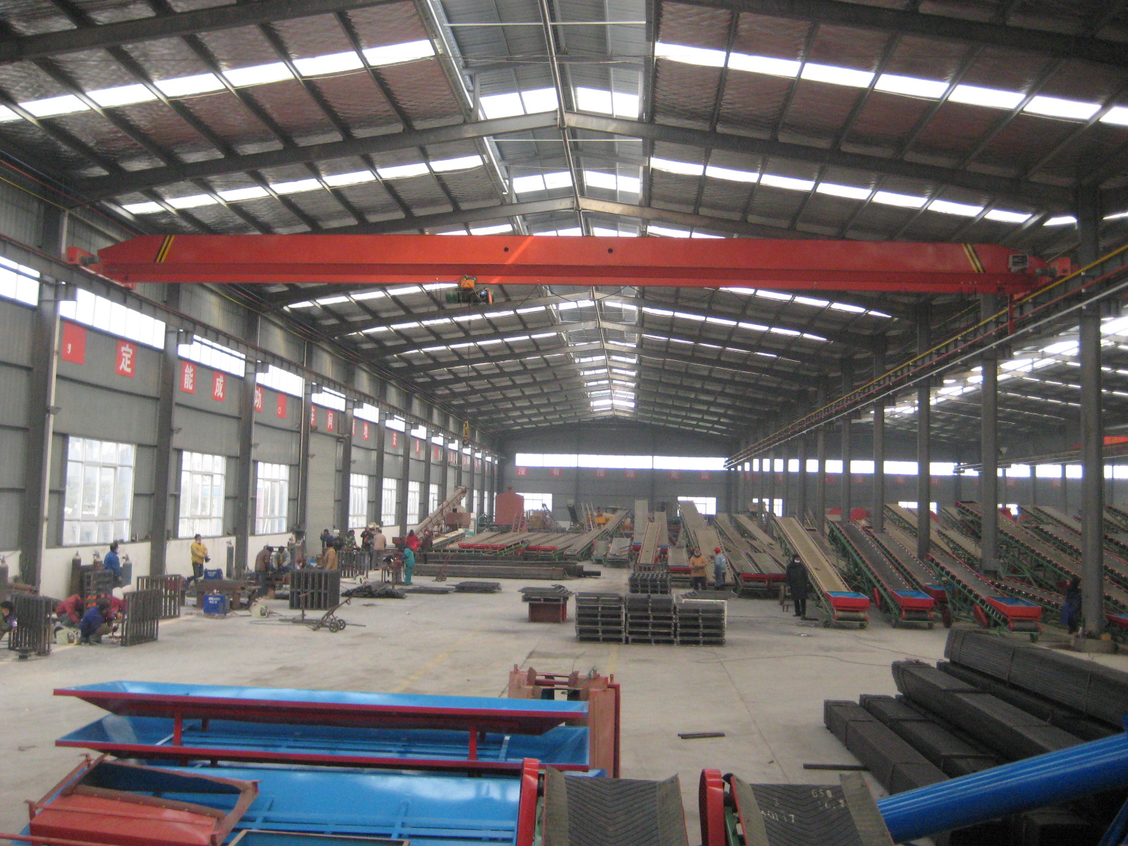 橋式起重機(jī)是橫架于車間、倉庫和料場上空進(jìn)行物料吊運(yùn)的起重設(shè)備。由于它的兩端坐落在高大的水泥柱或者金屬支架上,形狀似橋。橋式起重機(jī)的橋架沿鋪設(shè)在兩側(cè)高架上的軌道縱向運(yùn)行,可以充分利用橋架下面的空間吊運(yùn)物料,不受地面設(shè)備的阻礙。它是使用范圍**廣、數(shù)量**多的一種起重機(jī)械