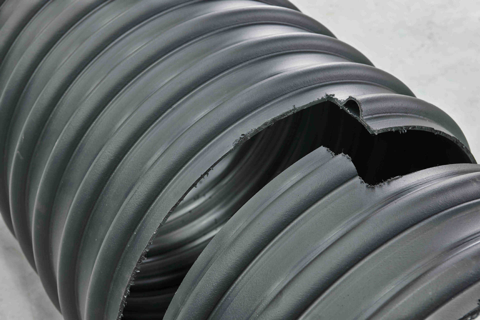 鋼帶增強(qiáng)聚乙烯螺旋波紋管具體生產(chǎn)工藝流程:在主機(jī)上先盤繞一個(gè)實(shí)壁PE內(nèi)層管,再將疊成倒“U”形、涂敷有性能**粘合樹脂的鋼板增強(qiáng)體置放在實(shí)壁PE內(nèi)層管的設(shè)計(jì)部位上,再再其外界擠壓復(fù)合一層與鋼板增強(qiáng)體波形同樣的PE表層,根據(jù)整形、定形、制冷、激光切割后**獲得制成品管材。