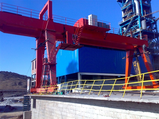 它的金屬結構像門形框架,承載主梁下安裝兩條支腳,可以直接在地面的軌道上行走,主梁兩端可以具有外伸懸臂梁。