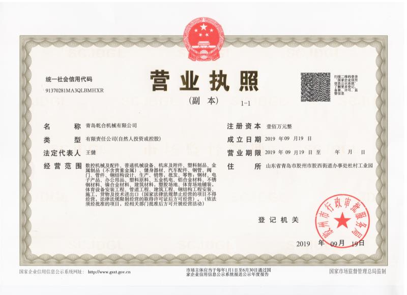 榮譽資質 青島乾合機械有限公司