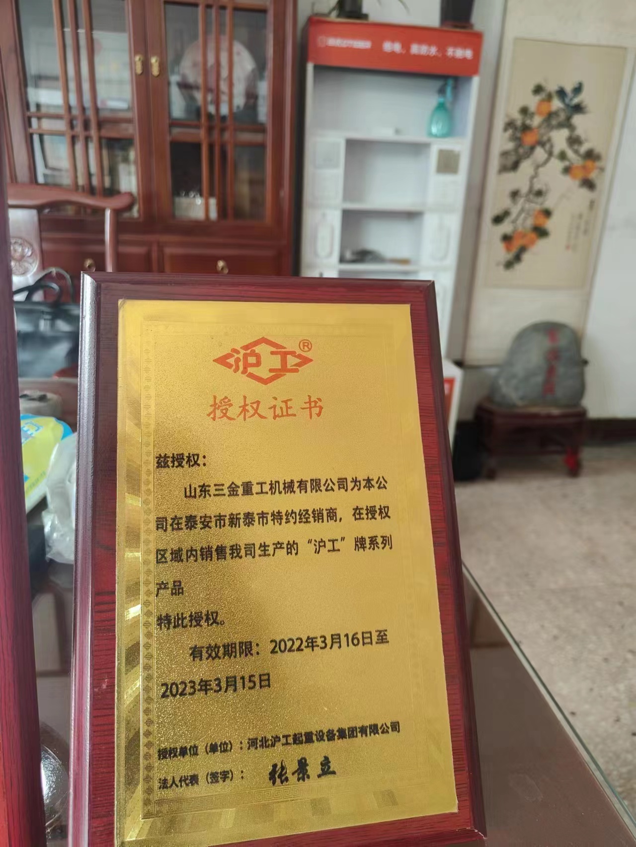 證書介紹 山東三金重工機(jī)械有限公司為本公司在泰安市新泰市特約經(jīng)銷商,在授權(quán)區(qū)域內(nèi)銷售我司生產(chǎn)的“滬工”牌系列產(chǎn)品