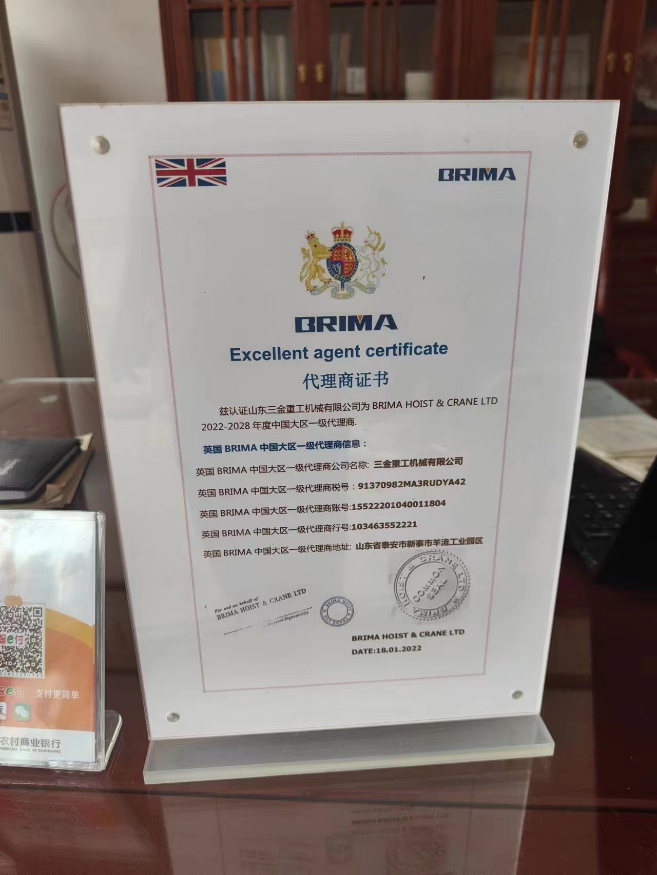 榮譽(yù)資質(zhì) BRIMA代理商證書