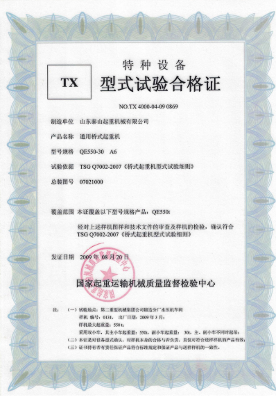| 發(fā)證機(jī)構(gòu): | 國家起重運(yùn)輸機(jī)械質(zhì)量監(jiān)督檢驗(yàn)中心 | 發(fā)證時(shí)間 : | 2009-08-20 |