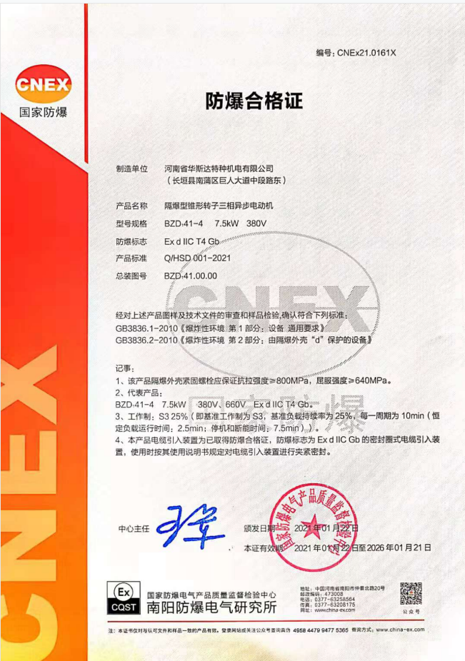 | 發(fā)證機(jī)構(gòu): | 國家防爆電氣產(chǎn)品質(zhì)量監(jiān)督檢驗(yàn)中心 | 發(fā)證時(shí)間 : | 2021-01-22 |