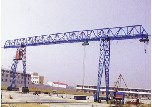 門式起重機是橋式起重機的一種變形,又叫龍門吊。主要用于室外的貨場、料場貨、散貨的裝卸作業(yè)。它的金屬結構像門形框架,承載主梁下安裝兩條支腳,可以直接在地面的軌道上行走,主梁兩端可以具有外伸懸臂梁。門式起重機具有場地利用率高、作業(yè)范圍大、適應面廣、通用性強等特點,在港口貨場得到廣泛使用。