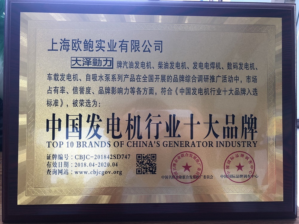 榮譽(yù)資質(zhì) 中國(guó)發(fā)電機(jī)行業(yè)十大品牌