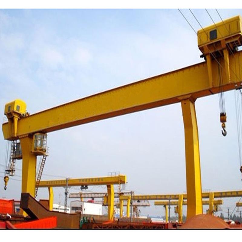它的金屬結(jié)構(gòu)像門形框架,承載主梁下安裝兩條支腳,可以直接在地面的軌道上行走,主梁兩端可以具有外伸懸臂梁。