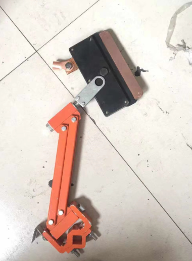機械結(jié)構(gòu)的張力裝置決定集電刷與導(dǎo)軌的滑動接觸壓力和機構(gòu)的穩(wěn)定性,集電刷則是導(dǎo)軌滑動接觸拾取電能的導(dǎo)體,它的性能和導(dǎo)電質(zhì)量以及材料結(jié)構(gòu)成分的優(yōu)劣,將直接影響整個系統(tǒng)設(shè)備的安全運行質(zhì)量。