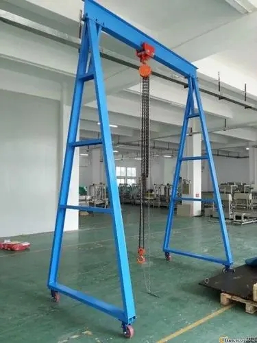 本實(shí)用新型涉及一種移動式龍門吊,包括兩個(gè)行吊立梁,焊接在立梁上帶有軌道的上梁,在上梁軌道上運(yùn)動的電動葫蘆,其特征在于:所述的行吊立梁由立梁前腿與立梁后腿組成,立梁前腿底部設(shè)置有定向輪,立梁后腿底部設(shè)置有萬向輪,本實(shí)用新型技術(shù)和現(xiàn)有技術(shù)相比,結(jié)構(gòu)簡單,體積小,造價(jià)低,使用范圍廣.
