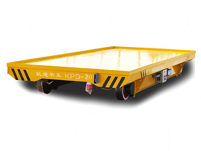 電動平車,又稱電動平板車、電平車、臺車、過跨車、電動軌道車、地爬車等,是一種廠內(nèi)有軌電動運輸車輛,首先它是一種軌道型運輸車輛,需要在地面上鋪設(shè)軌道,軌道一般為工字型面接觸道軌;其次它是電驅(qū)動車輛,在電機(jī)減速機(jī)驅(qū)動下自動運行,再次它是一種平板車,臺面平整無廂蓋,特殊情況下也可以是非平面但無廂蓋,車體無方向盤只有前進(jìn)后退方向(即使轉(zhuǎn)彎也城靠軌道轉(zhuǎn)彎)。此種車輛具有結(jié)構(gòu)簡單、使用方便、承載能力大、不怕臟不怕砸、維護(hù)容易、使用壽命長等特點,因其方便、壯實、經(jīng)濟(jì)、實用、易清理等諸多優(yōu)點,成為企業(yè)廠房內(nèi)部及廠房與廠房之間短距離定點頻繁運載重物的首選運輸工具。