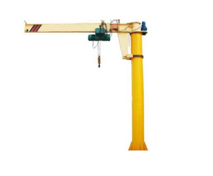 小型懸臂吊起重機(jī)工作強(qiáng)度為輕型,起重機(jī)由立柱,回轉(zhuǎn)臂回轉(zhuǎn)驅(qū)動裝置及電動葫蘆組成,立柱下端通過地腳螺栓固定在混凝土基礎(chǔ)上,由擺線針輪減速裝置來驅(qū)動懸臂回轉(zhuǎn),電動葫蘆在懸臂工字鋼上作左右直線運(yùn)行,并起吊重物。起重機(jī)旋臂為空心型鋼結(jié)構(gòu),自重輕,跨度大,起重量大,經(jīng)濟(jì)耐用。內(nèi)置式行走機(jī)構(gòu),采用帶滾動軸承的特種工程塑料走輪,摩擦力小,行走輕快;結(jié)構(gòu)尺寸小,特別有利于提高吊鉤行程。