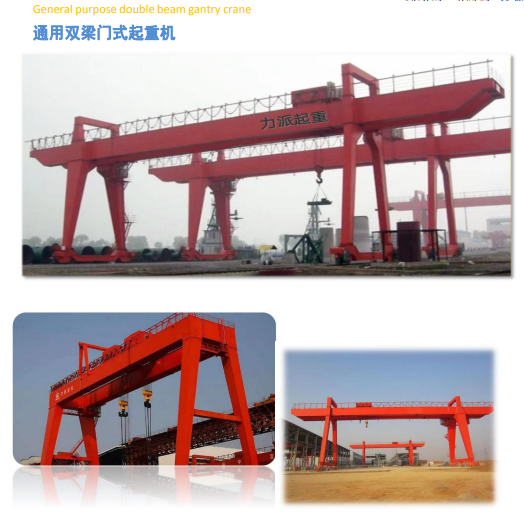 雙梁門式起重機(jī)型號有MG型雙梁門式起重機(jī)、MU型雙梁門式起重機(jī)兩種,根據(jù)產(chǎn)品外形可以分為U型雙梁龍門式起重機(jī)、A型雙梁門式起重機(jī)以及包箱雙梁門式起重機(jī)、花架雙梁門式起重機(jī)。本機(jī)適用于大跨度,裝卸作業(yè)頻繁的鐵路貨場、港口、露天倉庫、集裝箱中轉(zhuǎn)站進(jìn)行一般性貨物的裝卸及起重運輸工作(同樣適用于車間內(nèi)安裝使用)。整機(jī)有雙主梁橋架、大車運行結(jié)構(gòu)、小車、電氣設(shè)備等部分組成。