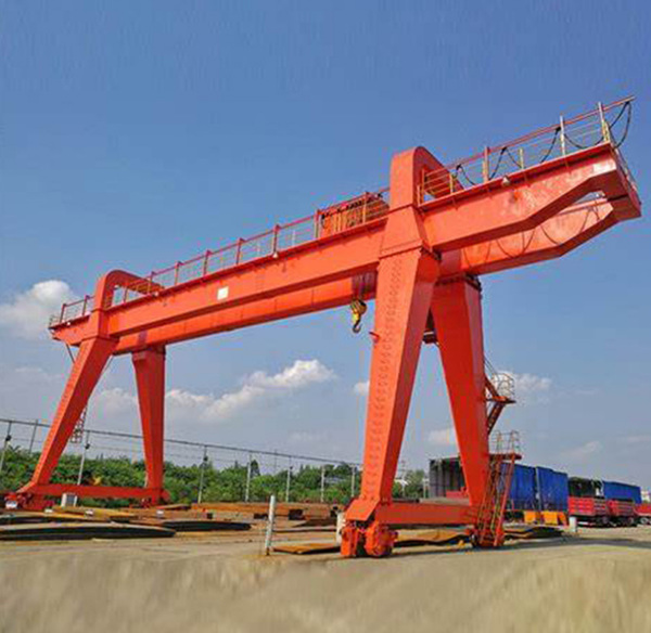 龍門吊是一種橋式起重機(jī),其金屬結(jié)構(gòu)像門形框架,承載主梁下安裝兩條支腳,可以直接在地面的軌道上行走,主梁兩端可以具有外伸懸臂梁。龍門吊具有場(chǎng)地利用率高、作業(yè)范圍大、適應(yīng)面廣、通用性強(qiáng)等特點(diǎn),在港口貨場(chǎng)得到廣泛使用。