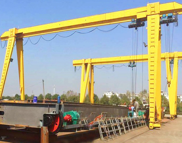 通用門式起重機(jī)是一種一般用途的門式起重機(jī),由門架、大車運(yùn)行機(jī)構(gòu)、起重小車和電氣部分等組成。其門架由上部橋架(含主梁和端梁)、支腿、下橫梁等部分構(gòu)成。為了擴(kuò)大起重機(jī)作業(yè)范圍,主梁可以向一側(cè)或兩側(cè)伸出支腿以外,形成懸臂;也可采用帶臂架的起重小車,通過臂架的俯仰和旋轉(zhuǎn)擴(kuò)大起重機(jī)作業(yè)范圍。
