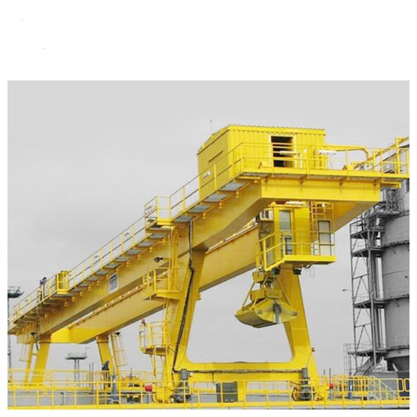 • 結(jié)構(gòu):兩端坐落在高大的水泥柱或者金屬支架上,形狀似橋。橋式起重機(jī)的橋架沿鋪設(shè)在兩側(cè)高架上的軌道縱向運(yùn)行,可以充分利用橋架下面的空間吊運(yùn)物料,不受地面設(shè)備的阻礙。