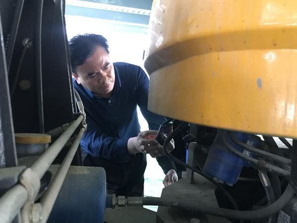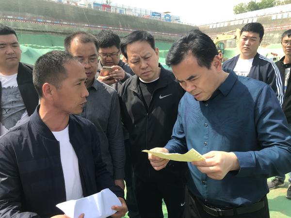 在建業(yè)中心項目工地,馮保河仔細(xì)詢問了車輛的油品使用情況,查看機(jī)械的加油臺賬。