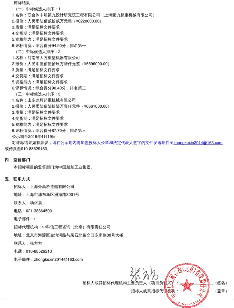 半門式起重機(jī)-中標(biāo)候選人公示