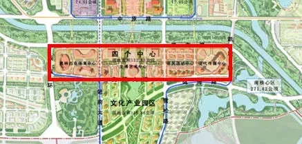 其中,中央文化區(qū)占地約1.64平方公里,規(guī)劃“四個(gè)中心”,自西向東分別為奧體中心、文博藝術(shù)中心、市民活動(dòng)中心和現(xiàn)代傳媒中心。其中“四個(gè)中心”共建設(shè)有16個(gè)單體建筑。
