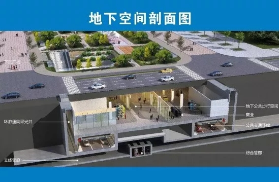 地下三層綜合環(huán)廊工程地下空間規(guī)劃的以綜合管廊、公共交通環(huán)廊和商業(yè)設(shè)施為主,該工程使整個(gè)中央文化區(qū)地面真正形成“無車區(qū)”,區(qū)域內(nèi)人車分流,屆時(shí),機(jī)動(dòng)車全部通過地下交通系統(tǒng)運(yùn)行。