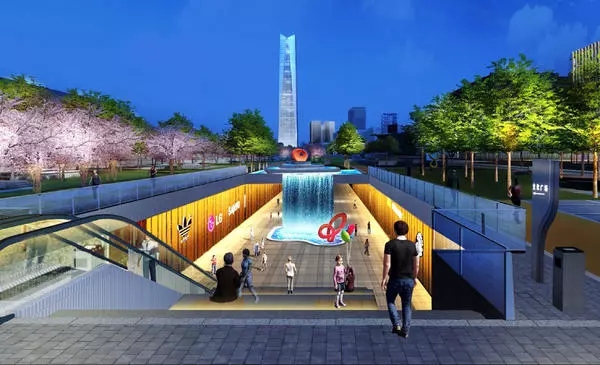 ▲地下商業(yè)夜景效果圖