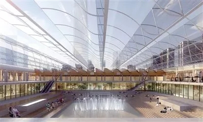同時(shí)地面規(guī)劃則是綠軸廣場(chǎng),東西長(zhǎng)2公里,南北寬60米。建筑群以這條綠軸為界分布,這里將會(huì)形成一條縱向的“城市綠軸”畫卷。
