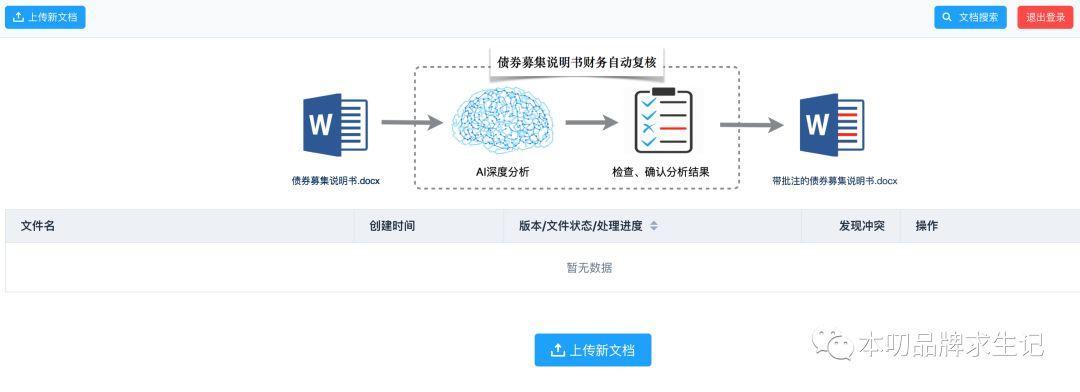 用戶只需上傳一個(gè)Word格式的 “債券募集說(shuō)明書”,過(guò)大約半個(gè)小時(shí),這一功能就能自動(dòng)找到募集說(shuō)明書里財(cái)務(wù)數(shù)據(jù)可能的錯(cuò)誤和沖突,一條一條的列出來(lái)供用戶復(fù)核。