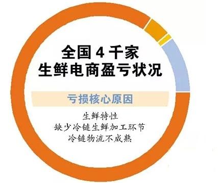 據(jù)中國電子商務(wù)研究中心發(fā)布的一組數(shù)據(jù)顯示:生鮮電商 4000 多家入局者中,4%持平,88%虧損,且剩下的7%是巨額虧損,最終只有1%實(shí)現(xiàn)了盈利。而據(jù)另一組公開數(shù)據(jù)顯示,2018年我國生鮮市場交易規(guī)模達(dá)到4萬億元,其中生鮮電商行業(yè)市場交易規(guī)模達(dá)到2103.2億元,較2017年(1402.8億元)增長49.93%。也就是說,交易規(guī)模大、被稱為最后一片電商藍(lán)海的生鮮電商,卻長期飽受1%的低盈利概率之痛。