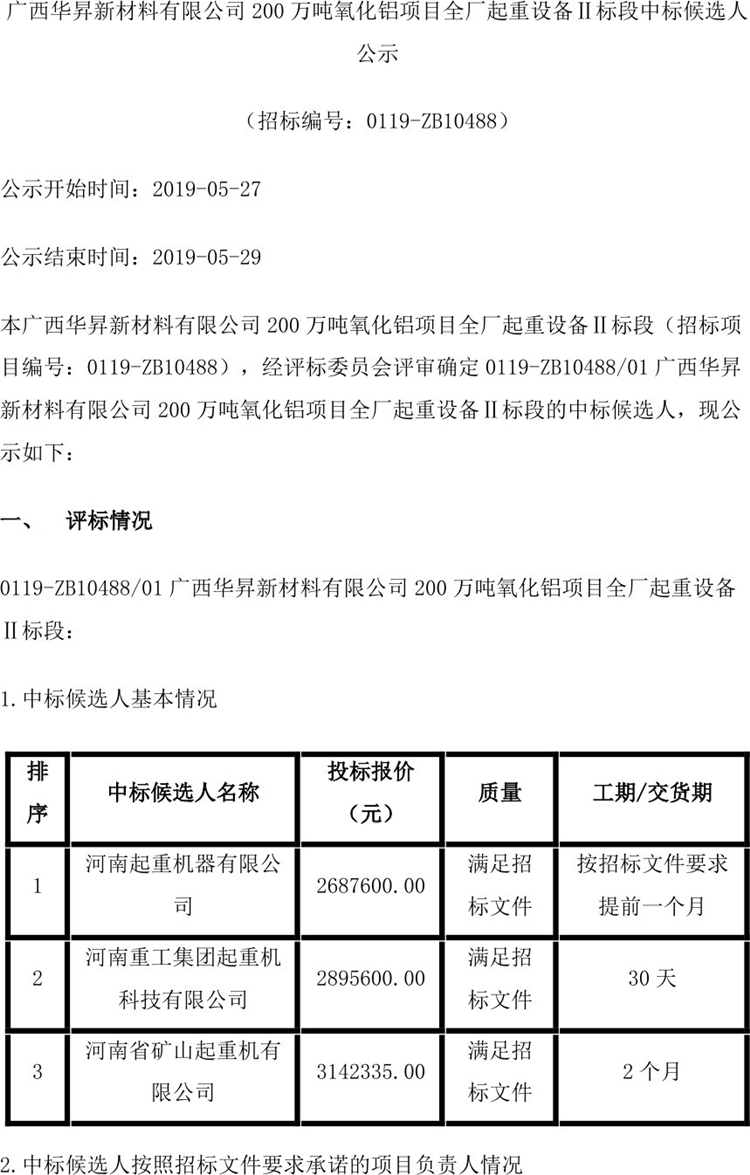移動版:廣西華昇新材料有限公司200萬噸氧化鋁項(xiàng)目全廠起重設(shè)備Ⅱ標(biāo)段中標(biāo)候選人公示