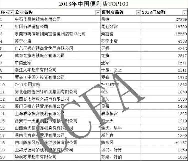 據(jù)CCFA最新發(fā)布的《2018年中國便利店TOP 100》榜單顯示,全家以2571的成績排名第7,而同為日本便利店品牌的羅森和7-11則分別位列第9和第10位。